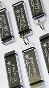 Schlüsselanhänger in Messing-, Alu- oder Holzoptik